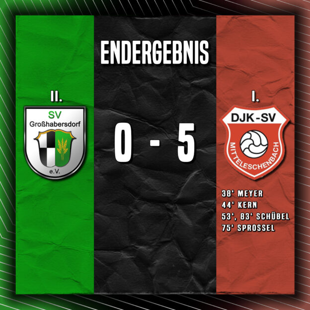 Nachdem der TSV Roßtal die Partie gegen die 1. Mannschaft wegen zu weniger Spieler absagen musste, trat heute nur die 2. Mannschaft gegen den DJK-SV Mitteleschenbach an. Zwar war man in der ersten halben Stunde die spielbestimmende Mannschaft, konnte aber letztendlich nichts zählbares mitnehmen.