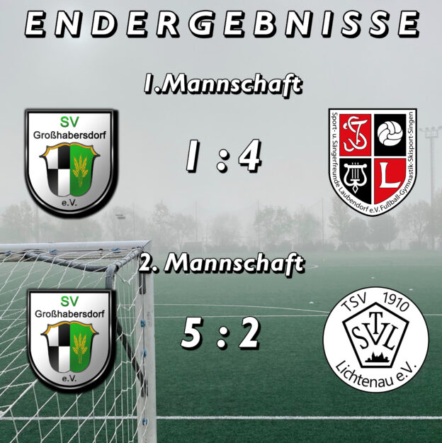 ⚽ Gemischte Gefühle am Heimspieltag ⚽ – Die 2. holt einen 0:2 Rückstand auf und siegt letztendlich überlegen mit 5:2, die 1. muss sich mit 1:4 geschlagen geben.