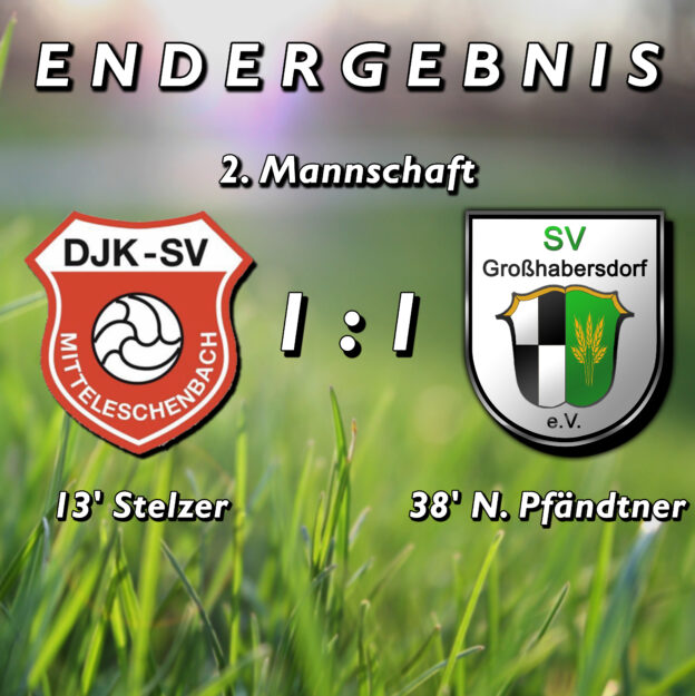 Durch die Absage des Spiels der 1. Mannschaft durch den TSV Roßtal war heute nur ein Team im Einsatz. Die 2. holt beim DJK-SV Mitteleschenbach das zweite Unentschieden der Saison und sammelt so zumindest langsam Punkte.