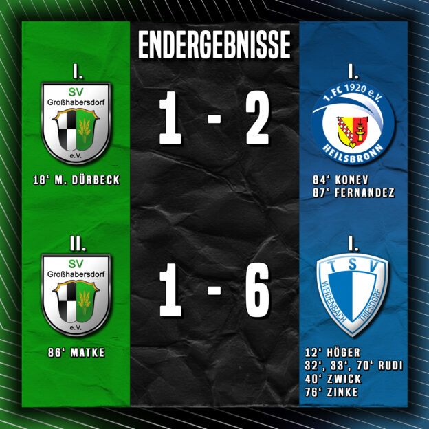 Die 1. Mannschaft zog ich Verfolgerduell gegen den 1. FC Heilsbronn spät den Kürzeren, die 2. Mannschaft musste sich gegen den TSV Weidenbach ebenfalls geschlagen geben.