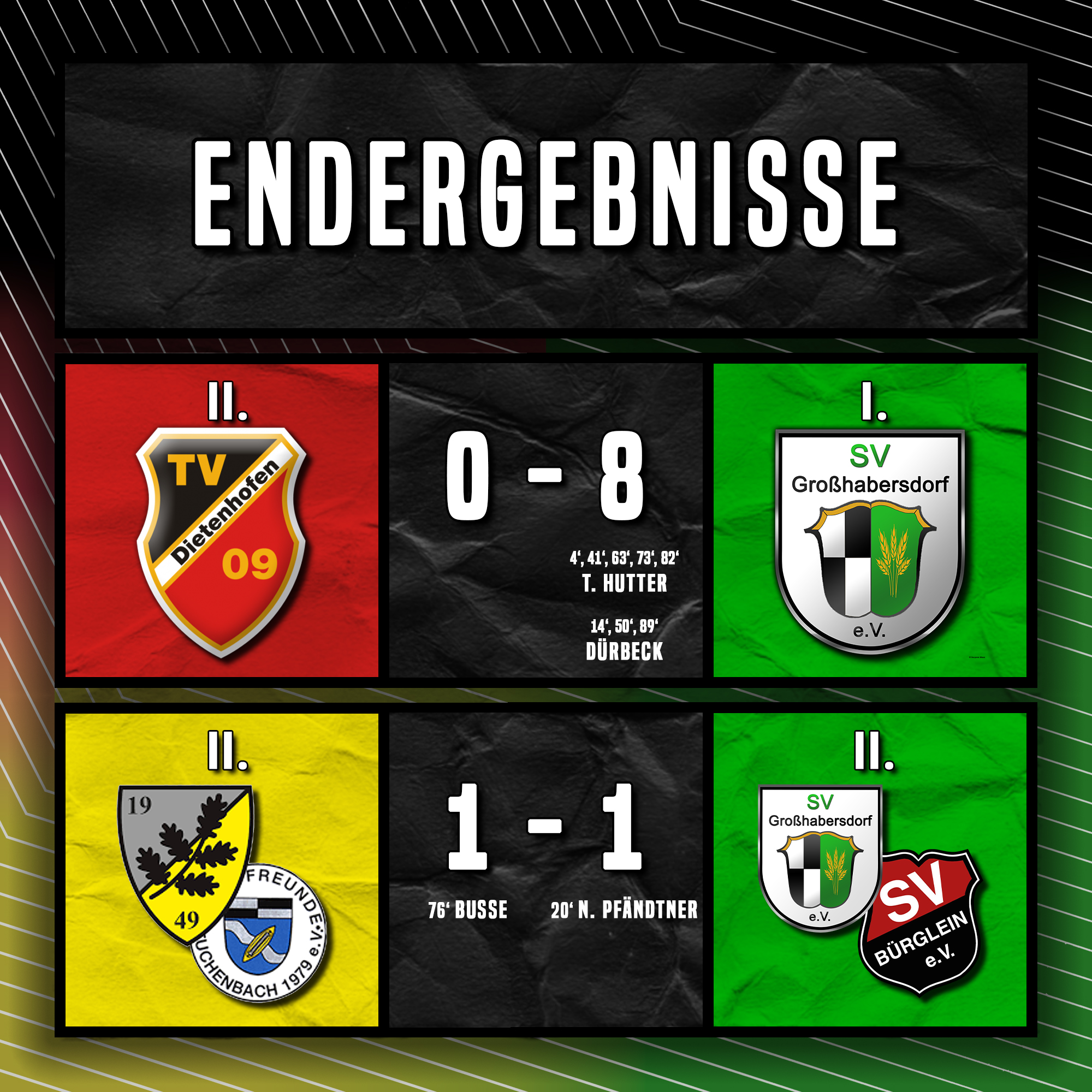 Während die 1. Mannschaft in Dietenhofen keinen Zweifel am Sieger zuließ, kam die 2. Mannschaft in Tuchenbach/Puschendorf nicht über eine Punkteteilung hinaus.