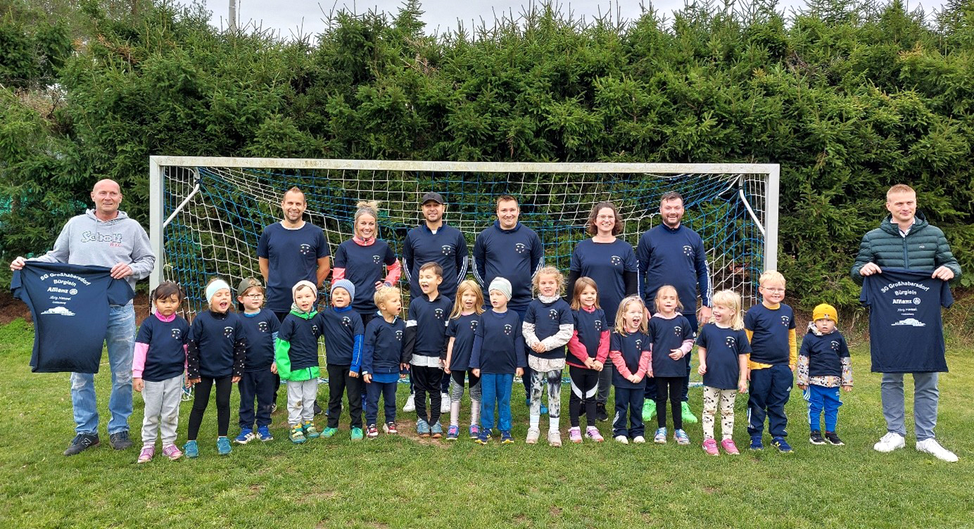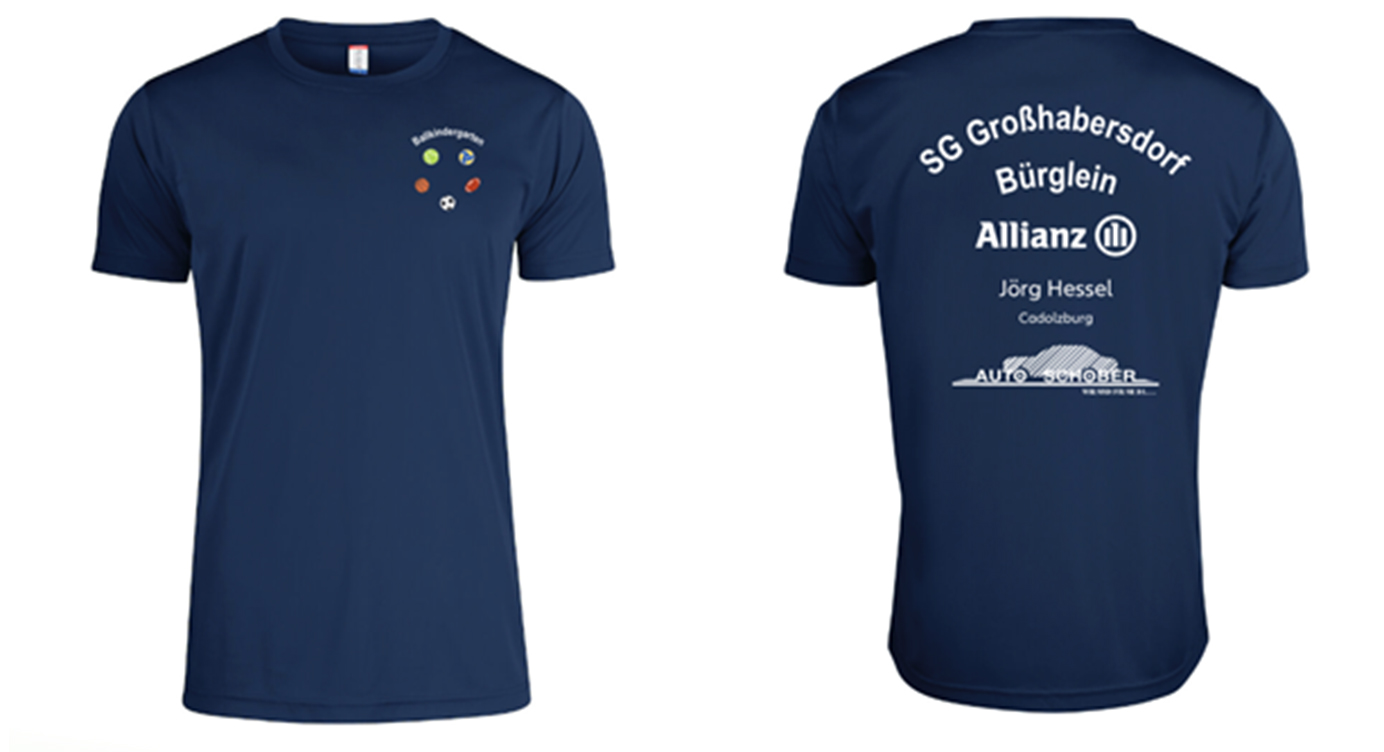 Dank der großzügigen Unterstützung des Autohauses Schober (Matthias Schober) und der Allianz Versicherung Hessel (Jörg Hessel) dürfen sich nun alle Kinder und Trainer des Ballkindergartens über neue T-Shirts mit dem eigens gestalteten Ballkindergarten-Logo freuen.