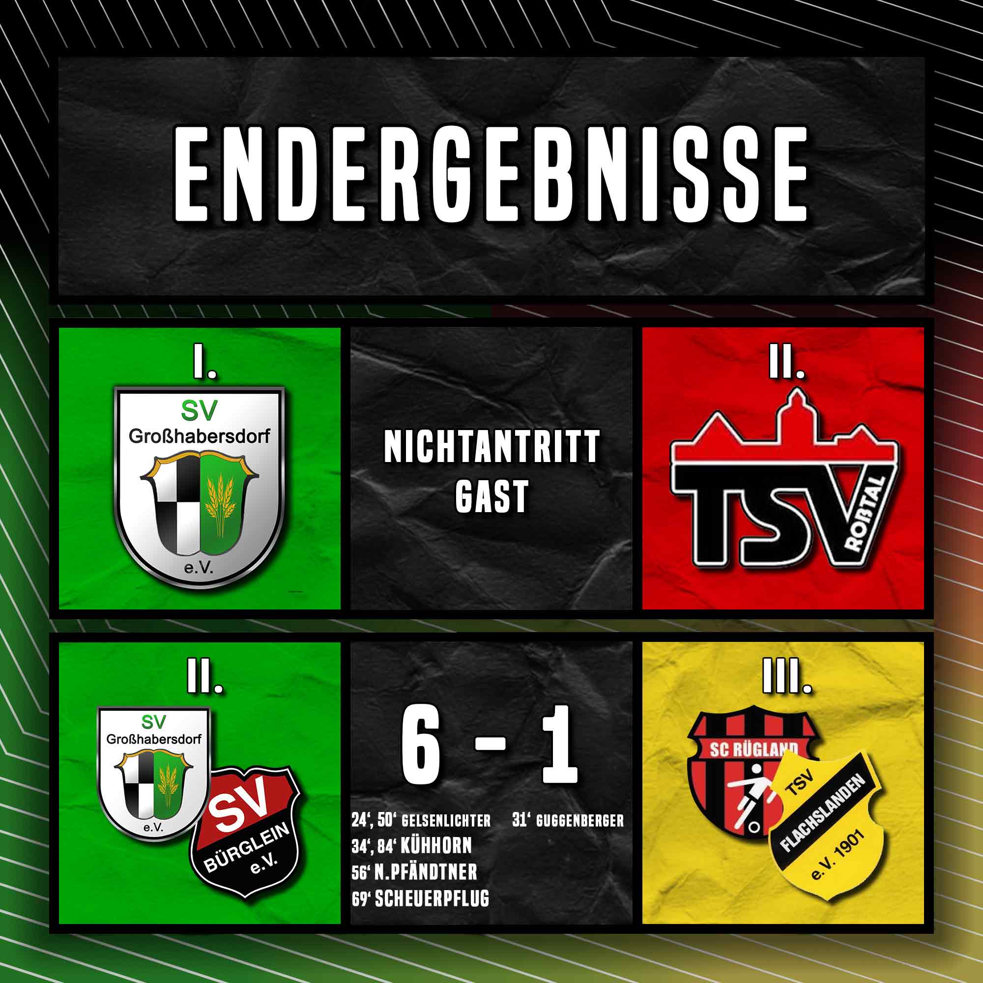 Während die 1. Mannschaft wegen eines Mangels an Spielern beim TSV Roßtal II ohne Partie zu drei Punkten kam, setzte sich die 2. Mannschaft deutlich gegen die SG Flachslanden/Rügland III durch.